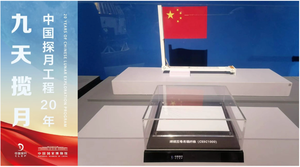(東華團隊制備的月壤纖維在“九天攬月——中國探月工程20年”展覽中展出)