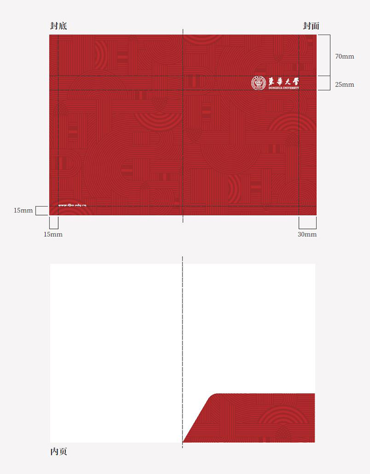東華大學(xué)視覺形象識別規(guī)范包含基礎(chǔ)系統(tǒng)和應(yīng)用系統(tǒng)2個部分。基礎(chǔ)部分包括“校徽規(guī)范及組合形式”和“視覺識別系統(tǒng)規(guī)范”,規(guī)定了校徽、校訓(xùn)的規(guī)范使用和禁止使用模式,以及標(biāo)準(zhǔn)色、輔助圖形、專用字體等的規(guī)范使用方式。應(yīng)用部分明確了學(xué)校的基本元素在行政辦公系統(tǒng)、多媒體系統(tǒng)、印刷出版物宣傳系統(tǒng)、人力資源系統(tǒng)、會務(wù)系統(tǒng)以及附屬品系統(tǒng)中的應(yīng)用規(guī)范,根據(jù)輔助圖形在實(shí)際情況中所遇到的不同載體,規(guī)范制定其在傳播載體中的位置與比例關(guān)系,便于統(tǒng)一學(xué)校視覺形象,確保在應(yīng)用基本元素時能體現(xiàn)最佳效果。