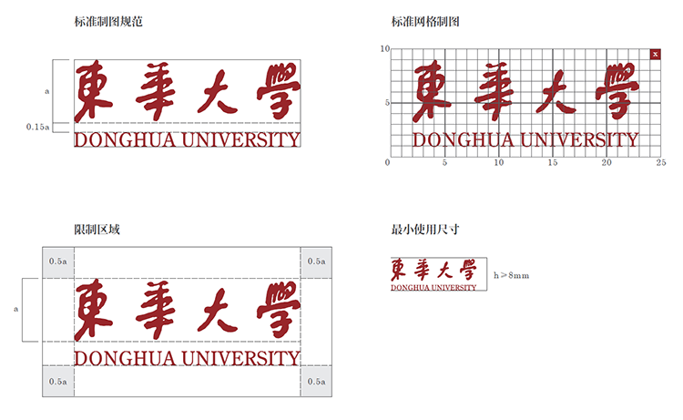 東華大學(xué)校徽標(biāo)準(zhǔn)組合是每個版面上的品牌識別符號。為了確保品牌標(biāo)識易于識別和辨認(rèn),我們可根據(jù)版面需要將品牌標(biāo)識放于①②③④任一個角的位置。