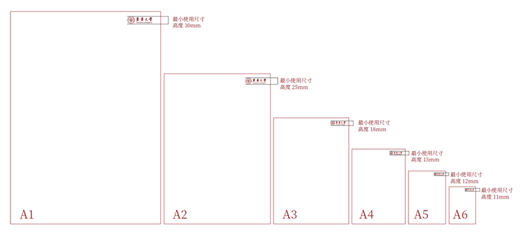 由于標(biāo)準(zhǔn)紙大小為倍數(shù)關(guān)系逐級遞增,所以相對的標(biāo)志大小亦等量逐級遞增。超出A1大小的紙張尺寸請等比計(jì)算,得到正確的標(biāo)志大小。