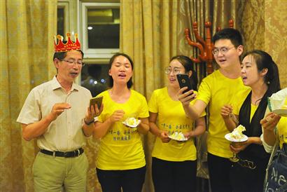 援疆團(tuán)學(xué)子為邱夷平(左一)過(guò)62歲生日