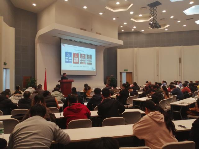 付本林從政策解讀、分類要求和學(xué)校推進(jìn)三個(gè)方面進(jìn)行講解,他提出無(wú)害化、減量化等垃圾分類的基本要求,讓大家從整體上更加深入了解垃圾分類工作的重要性和必要性。他提到目前我國(guó)的垃圾分類工作與一些國(guó)家還有一定差距,改善這一狀況需要全體人民提高認(rèn)識(shí)、自覺(jué)行動(dòng)。對(duì)于學(xué)校而言,他指出要把食堂和學(xué)生宿舍作為工作重點(diǎn),做好校園內(nèi)快遞包裝和外賣餐盒的回收利用及垃圾運(yùn)輸工作。
