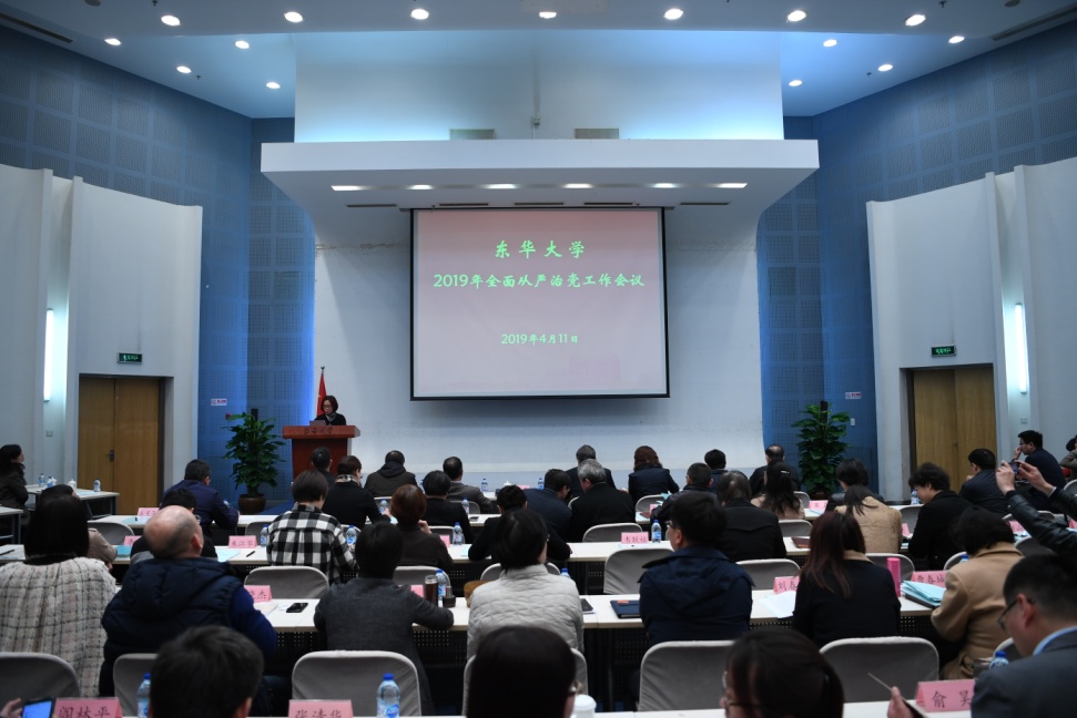4月11日,學校在松江校區召開2019年全面從嚴治黨工作會議,總結2018年工作進展,部署2019年重點任務,同時開展警示教育。在校黨政領導班子成員出席會議。
