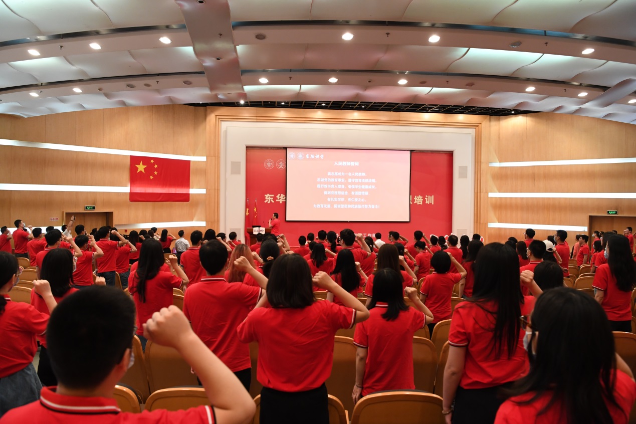 俞建勇就“如何做一個好老師”對新教職工提出了四點期望。希望新教職工堅守教育報國的初心,把教育工作視為終身追求的事業;牢記教書育人的使命,實現全員、全過程、全方位育人;盡快實現角色轉變,把個人發展融入到學校改革發展的偉大事業中;心存敬畏,守住底線,養成良好師德。他勉勵新教職工要以“功成不必在我”的精神境界和“功成必定有我”的歷史擔當,努力爭做“有理想信念、有道德情操、有扎實學識、有仁愛之心”的“四有”好教師,擔負起立德樹人的光榮職責與使命,在東華的大舞臺上實現人生價值。