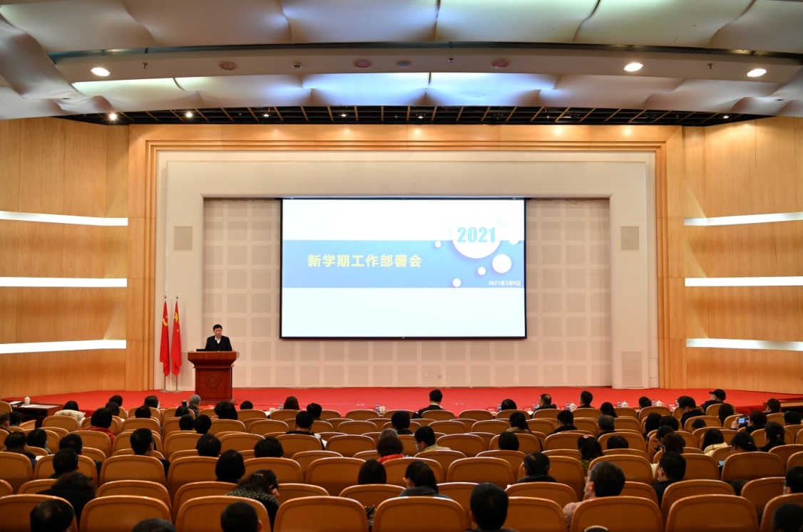 3月9日下午,學校2021年工作部署會在松江校區召開。會議強調,要以習近平新時代中國特色社會主義思想為指導,深入貫徹落實黨的十九大和十九屆二中、三中、四中、五中全會精神,深入學習貫徹習近平總書記關于教育的重要論述和考察上海重要講話精神,深入開展黨史學習教育,堅持黨的全面領導,全面落實立德樹人根本任務,不斷推進依法治校,立足新發展階段,貫徹新發展理念,全面啟動實施“十四五”規劃,加快構建以學科為統領的高質量發展新格局,以“奮進東華”建設新實效迎接建黨100周年、建校70周年和學校第十一次黨代會的勝利召開。