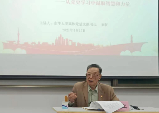 為深入學習習近平總書記在黨史學習教育動員大會上的重要講話及習近平總書記給上海市新四軍歷史研究會的百歲老戰士們的回信精神,東華大學“追夢百年·薪火相傳”——老干部老黨員為青年師生講百堂黨史校史活動首講于4月20日正式開啟。我校離休干部劉征為青年學生帶來一堂以“百年滄桑歲月·百年輝煌榮光——從黨史學習中汲取智慧和力量”為題的主題黨課。