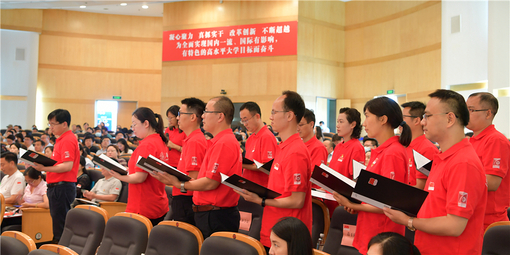 會(huì)議最后,劉承功帶領(lǐng)全場(chǎng)黨員師生共同重溫入黨誓詞,號(hào)召各級(jí)黨組織和廣大師生黨員回望初心使命、永葆政治本色、提振奮斗精神,共同譜寫“奮進(jìn)東華”新篇章!