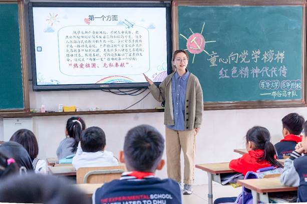 本學期重點圍繞“兩彈一星精神”、“改革開放精神”等開展授課。近期,13名研究生再次走進東華大學附屬實驗學校實體課堂為中小學生講授黨的發(fā)展歷程中前輩們如何攻堅克難、頑強拼搏、自力更生、開拓創(chuàng)新、勇于擔當,不斷取得輝煌業(yè)績,激發(fā)中小學生們愛國報國、勇攀高峰的精神品格。