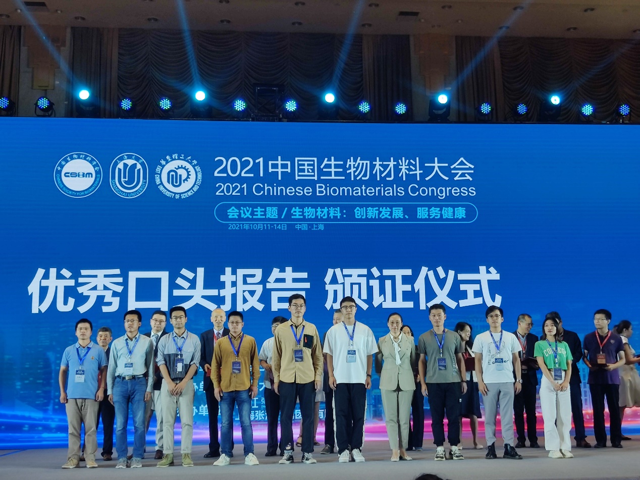 工生物學院師生受邀參加2021中國生物材料大會 博士生胡高銓、易兵成榮獲優秀口頭報告獎