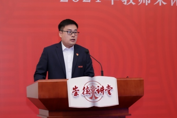 會上,張耀鵬介紹了2021年新教職工入職培訓(xùn)、教師國情教育研修班的總體情況。今年新教職工入職培訓(xùn)于6月啟動,依托教師思想政治與師德師風(fēng)建設(shè)平臺“崇德講堂”,開展了涵蓋主題報告、師德師風(fēng)專題培訓(xùn)、入職宣誓、能力培養(yǎng)與規(guī)范學(xué)習(xí)、專項培訓(xùn)、傳承·奮進(jìn)等模塊的主題培訓(xùn),以立體式的入職教育體系推動教師師德養(yǎng)成與素養(yǎng)提升。此外,學(xué)校今年面向高層次人才、海外歸國教師、思想政治理論課教師等群體開展教師國情教育研修班,赴江西瑞金開展實地研學(xué),深入推進(jìn)以黨史為重點的“四史”學(xué)習(xí)教育,強化教師教育強國、教育為民的責(zé)任擔(dān)當(dāng)。