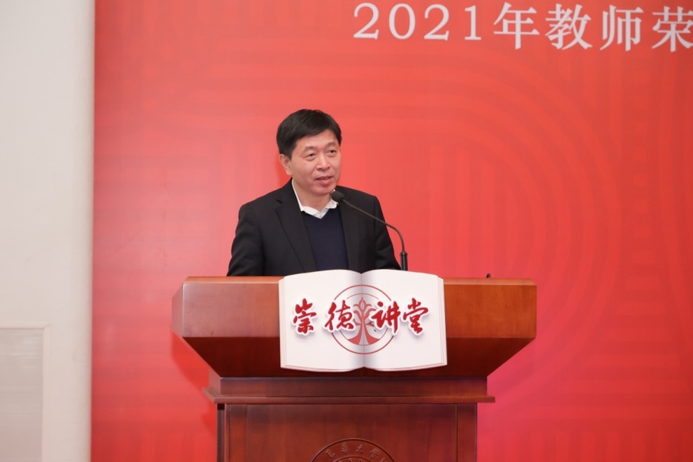 榮休教師代表、“全國先進(jìn)工作者”、化學(xué)化工與生物工程學(xué)院教授閻克路在發(fā)言中動情回憶從教四十年來深耕教學(xué)和科研工作的點滴,“我的夢想就是上好一門課、編好一本教材,這是高校教師的初心,也是我們神圣的職責(zé)”“今天,我退休了,我將繼續(xù)努力,做一名活到老、學(xué)到老的新時代退休教師”。“以吾輩之青春,賡續(xù)東華之榮光”“在‘為學(xué)’上當(dāng)表率、在‘為事’上當(dāng)?shù)浞丁⒃凇疄槿恕袭?dāng)楷模”,服裝與藝術(shù)設(shè)計學(xué)院青年教師張鑫、人文學(xué)院專職輔導(dǎo)員穆莉代表新教職工發(fā)言,許下為黨育人、為國育才的鄭重承諾。2021年教師國情教育研修班學(xué)員代表、化學(xué)化工與生物工程學(xué)院特聘研究員宣為民在發(fā)言中表達(dá)了作為高校教師和科研工作者心懷“國之大者”、深懷愛國之心、砥礪報國之志的決心。