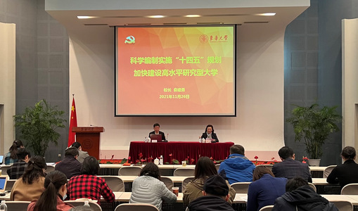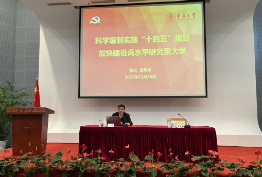 為堅持黨建引領,進一步以學校事業發展遠景藍圖推動全校教職工為建成“國內一流、國際有影響,有特色的高水平研究型大學”目標而奮斗,11月26日,校長俞建勇在松江校區為學校基層黨員骨干作“科學編制實施‘十四五’規劃 加快建設高水平研究型大學”專題輔導報告,報告由黨委副書記崔運花主持。