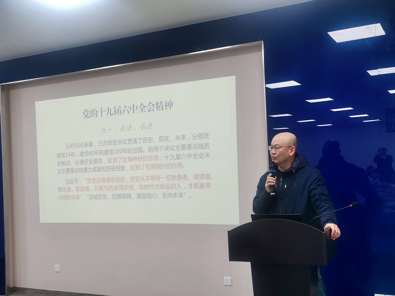 為深入學習貫徹黨的十九屆六中全會精神,12月21日下午,理學院在2號學院樓235會議室舉辦學習貫徹黨的十九屆六中全會精神的專題輔導報告會,邀請校黨委常委、宣傳部部長任曉杰同志作題為“以史為鑒、開創未來”專題輔導報告,會議由理學院黨委副書記(主持工作)謝峰主持,理學院全體教工黨員、研究生黨員參加學習。