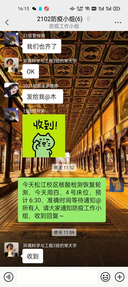 此外,普彩云、張雨琦、任濼彤等多名支部黨員積極響應號召,主動請纓加入到核酸檢測志愿活動中,在多次集中核酸時協助做好紀律維護、信息登記等工作,在這場大戰大考中充分展現出了新時代青年黨員的責任擔當。