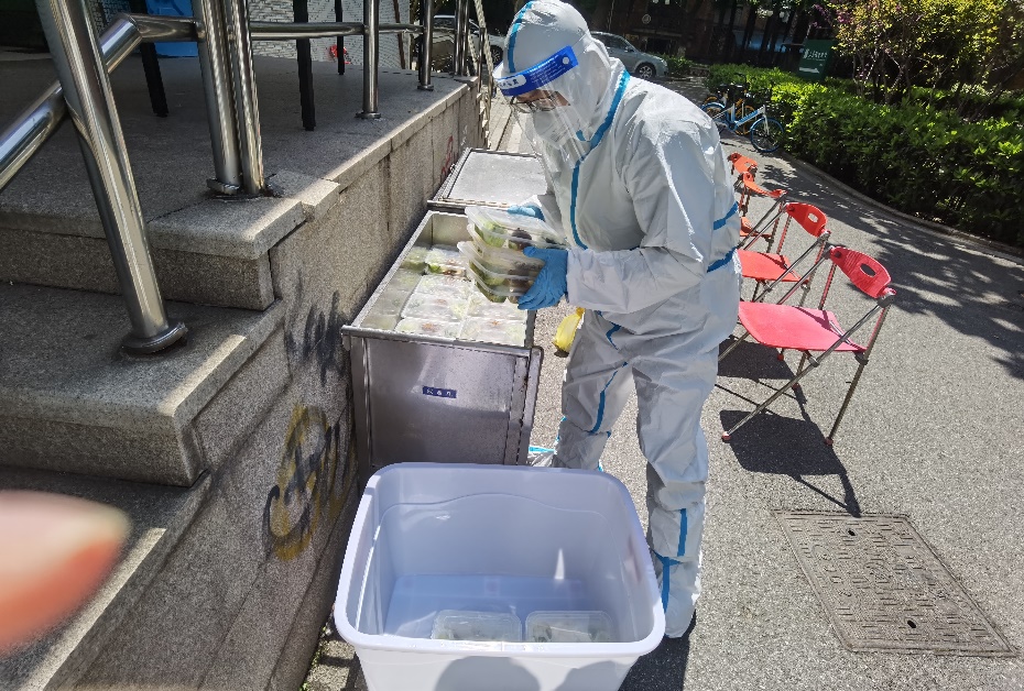 信訪辦的黃洪濤老師剛剛完成送飯任務(wù),又馬上投入到本職工作中了。“開始還擔(dān)心自己是新手‘外賣員’,松江校區(qū)這么面積大,這么多飯?jiān)趺此停綅徍罂吹綄W(xué)校預(yù)案充分,大家迅速響應(yīng)、線上集結(jié)、線下分組行動(dòng),一切都在有序、快速推進(jìn),心里就踏實(shí)許多了。”