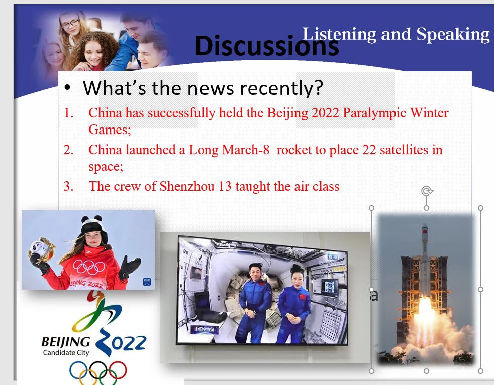 公共研究生外語教研室“就地取材”,把思政之“鹽”撒向教學云課堂。冬奧會、殘奧會、神州十三號機組人員的“天宮課堂”以及抗擊疫情等話題也進入了云課堂,成為線上課堂的教學內(nèi)容,對學生進行傳統(tǒng)文化浸潤和愛國主義教育。此外,線上“日本語言文化研究”聯(lián)合學術研討會成功舉辦,來自中日兩國多所高校80余位專家學者和研究生相聚云端。在黨委“我為群眾辦實事”重點項目推進下,學院黨員教師積極開辟線上第二課堂,口語配音、仿讀大賽、線上英語角等活動等云端輪番上演,提升學生“講好中國故事”能力。學院復試工作小組多次模擬調(diào)試,針對可能出現(xiàn)的各種情況做了充分預案,最終采用線上線下相結合的方式順利完成研究生復試工作。