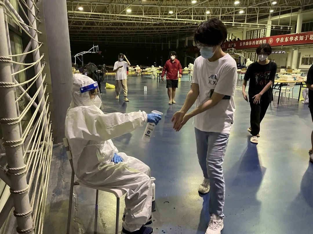 “東華園里,除了為核酸檢測服務的志愿者,很多老師還投身到送餐志愿者、宿舍樓外志愿者、宿舍駐樓志愿者、食堂秩序維護志愿者、校園秩序維護志愿者、教師網格樓內志愿者、物資搬運志愿者、學生返鄉離校發車志愿者等十大類不同的志愿者崗位。”學校教師志愿者工作的負責人之一、黨委組織部張曉冬介紹說。