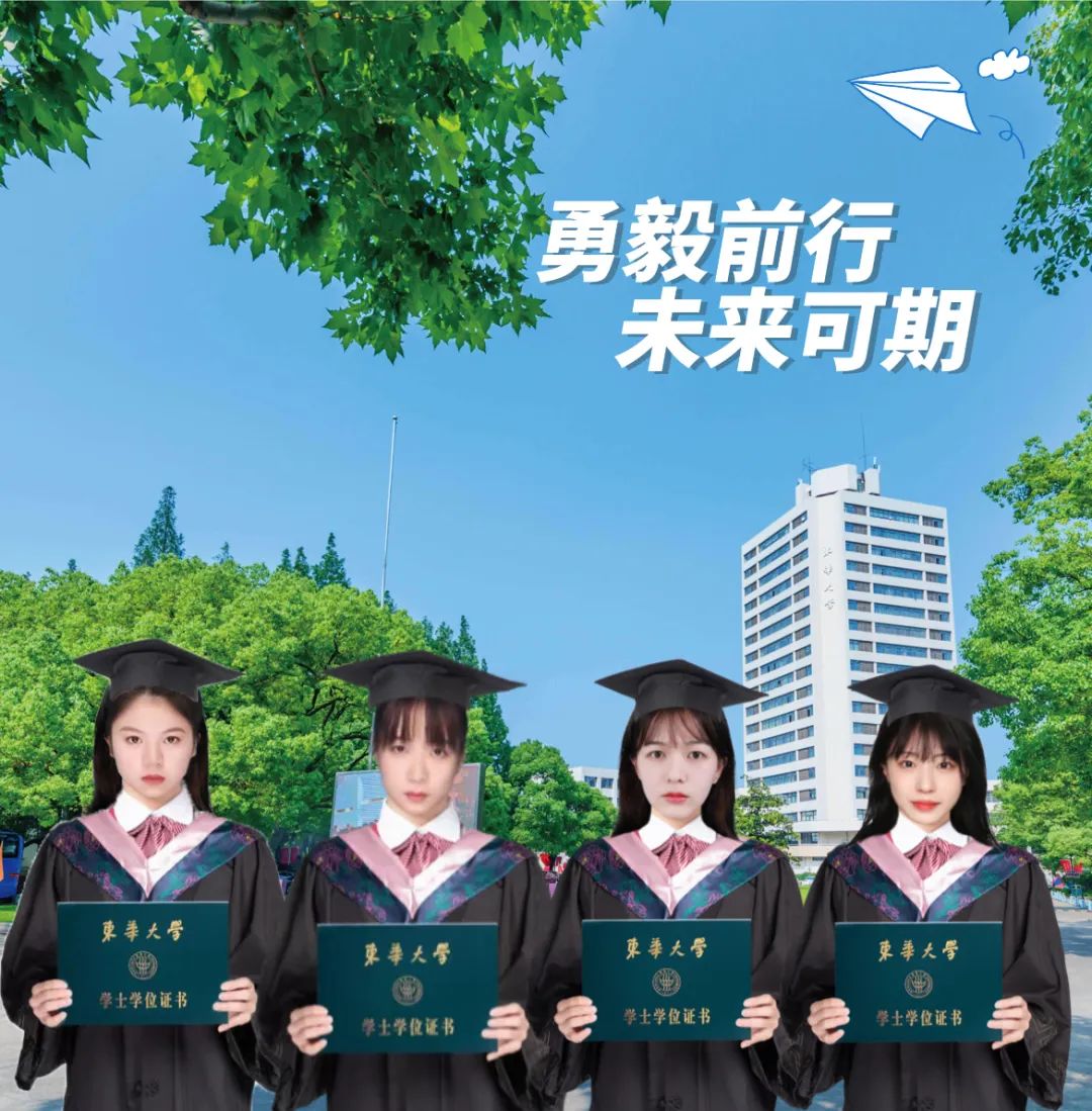 也許沒有現(xiàn)場撥穗而顯得不夠完美,但滿載愛與力量的視頻和創(chuàng)意照讓無數(shù)學(xué)子莞爾又淚目。學(xué)校為畢業(yè)生制作了視頻《奔赴未來》及專屬“云合影”,定格與同窗師長的珍貴東華記憶,紀(jì)念同學(xué)們在東華留下的足跡,祝愿大家奔赴美好的未來。