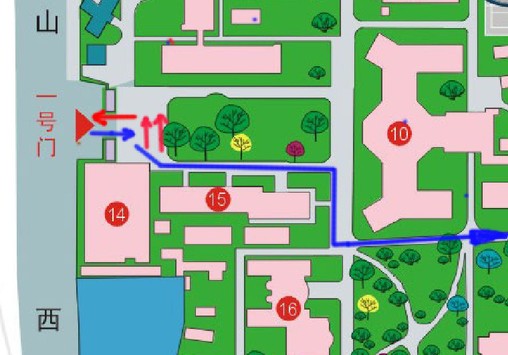 (紅線為送新生未審批車輛入校線路;藍線為校內職工和已審批車輛入校線路)