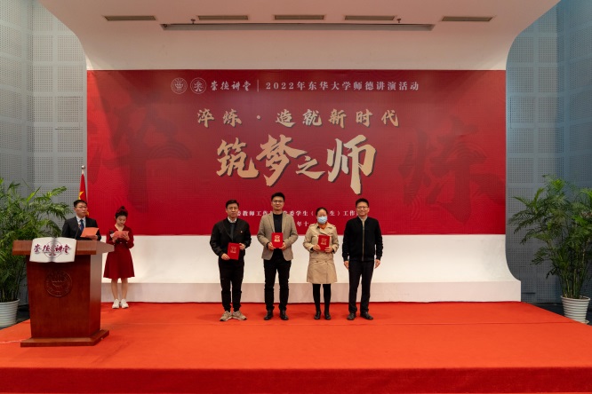 劉承功對師德講演活動所體現(xiàn)的師德傳統(tǒng)、思政元素以及東華人的精神氣質(zhì)表示高度肯定。他強調(diào),要深入學(xué)習(xí)貫徹黨的二十大精神和習(xí)近平總書記關(guān)于教師隊伍建設(shè)的一系列重要指示批示精神,落實好“加強師德師風(fēng)建設(shè),培養(yǎng)高素質(zhì)教師隊伍,弘揚尊師重教社會風(fēng)尚”的要求,以更加堅定的理想信念和使命擔(dān)當(dāng),努力做教書育人的“大先生”,學(xué)生健康成長的引路人,優(yōu)良師德師風(fēng)的傳承者,成為“經(jīng)師”和“人師”的統(tǒng)一者,讓尊師重教蔚然成風(fēng),讓好老師不斷涌現(xiàn),推動學(xué)校事業(yè)發(fā)展行穩(wěn)致遠。他希望全體教師要進一步筑牢理想信念的基石,履行作為“筑夢人”培養(yǎng)社會主義建設(shè)者和接班人的神圣職責(zé);要樹起師德風(fēng)范的標(biāo)桿,真正把做一名黨和人民滿意的教育工作者放在心頭、行在腳下;要練好業(yè)務(wù)能力和真功,做智慧型教師,不斷提升業(yè)務(wù)素質(zhì)和育人水平,加強有組織科研,以創(chuàng)新的理念培養(yǎng)創(chuàng)新型人才;要煥發(fā)人文關(guān)懷的光輝,秉持熱愛職業(yè)和學(xué)生的情懷,引導(dǎo)學(xué)生養(yǎng)成健全人格,形成正確的世界觀、人生觀和價值觀。