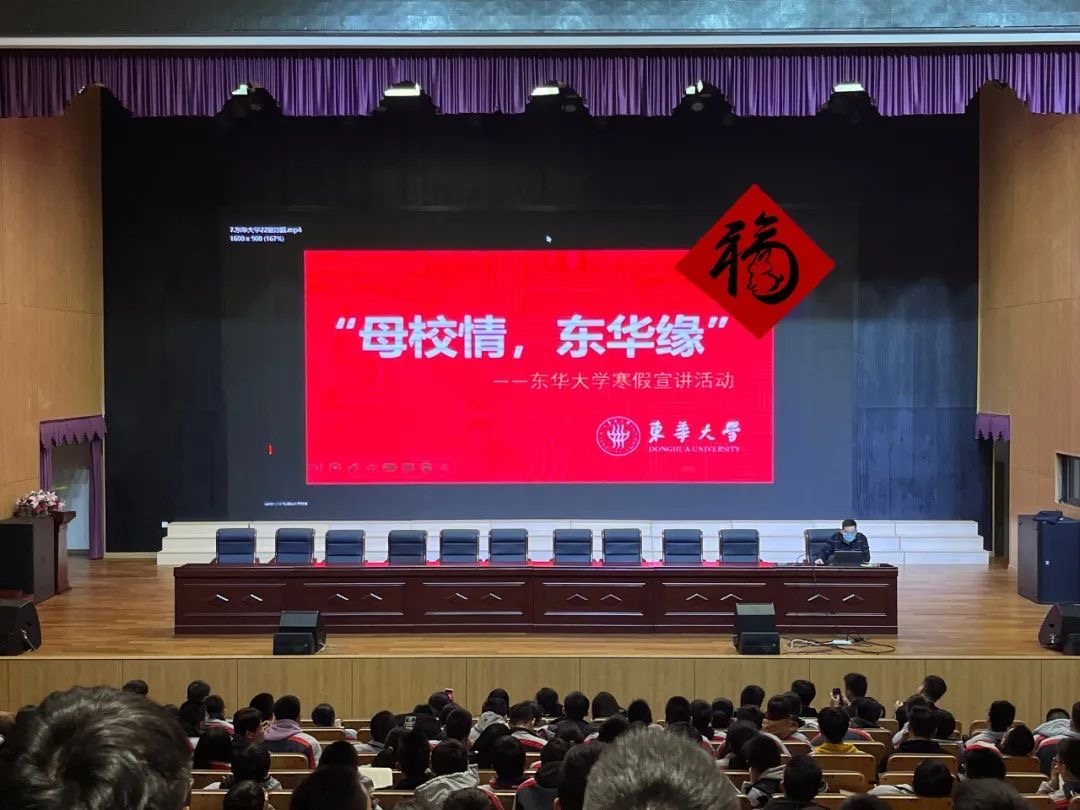 舊地重游,腦海中驟然浮現的是奮筆疾書的日日夜夜,“校園大使”用自己的成長故事,搭建起東華與生源地高中的紐帶。陳穎、謝彥梓和章雨軒前往浙江省瑞安市上海新紀元高級中學,介紹了我校辦學特色、培養模式,分享了自己的大學生活、高考填報志愿心得體會等。江蘇省贛榆高級中學小分隊則以視頻形式介紹東華概況,并聲情并茂地與學弟學妹分享充實多彩的大學學習生活經歷。線上宣講也如火如荼,河南省虞城縣高級中學小分隊通過“云宣講”,繪聲繪色地講解了東華的優勢與競爭力。“校園大使”耐心解答學弟學妹的疑惑,緩解他們的學習壓力,為他們鼓勁加油。