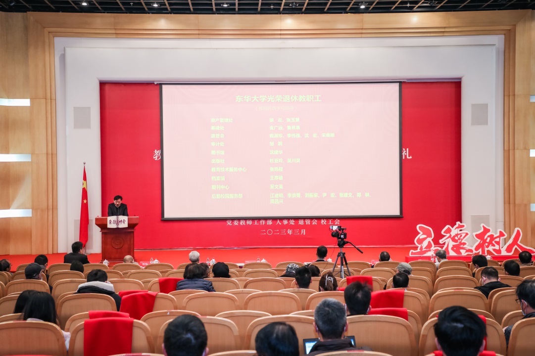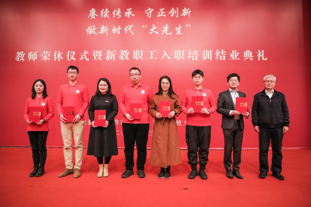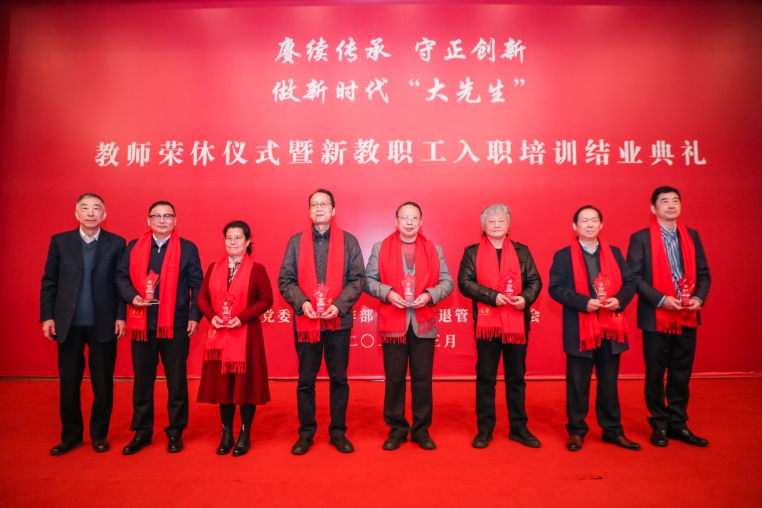 3月7日,2022年教師榮休儀式暨新教職工入職培訓結業典禮在松江校區舉行,87名榮休教師、61名新教職工參加儀式。黨委書記劉承功出席活動并講話,副校長趙震、退管會第一副主任王以剛、校關工委副主任浦解明出席。相關職能部門負責人、二級單位黨組織負責人、“崇德講堂”導師等參加活動。黨委教師工作部部長、人事處處長張耀鵬主持活動。