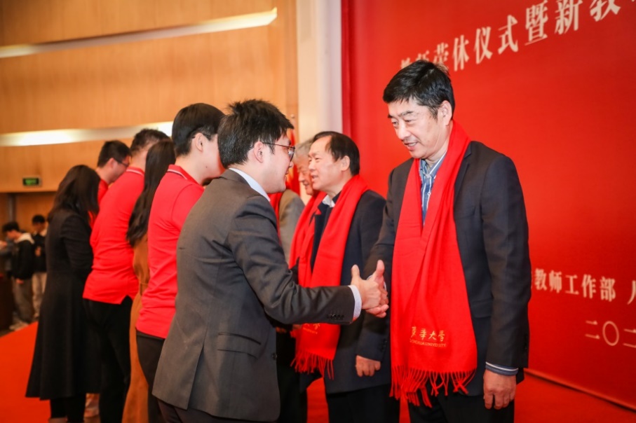 劉承功代表學校向榮休教師致以感謝,向新教職工表達期許。他指出,做“經師”和“人師”相統一的“大先生”,是黨和人民對教師的深切囑托,是人民教師的光榮使命。學校將老教師榮休儀式與新教師結業典禮一并舉行,新老教師同上“畢業大課”已成為優良傳統。榮休教師長久以來為學校建設發展付出艱辛努力,學校要用心用情用力做好退休工作,加強對老同志生活上的照顧、精神上的關懷。他希望,退休教職工繼續為學校加快推進“雙一流”建設、實現高水平研究型大學奮斗目標獻智獻策,在人才培養、學科建設、學術研究、隊伍建設等各方面發光發熱;新進教師要奮力在不同崗位創造出色的工作業績,在建設教育強國、科技強國、人才強國的宏大事業中實現人生價值,作出應有貢獻。