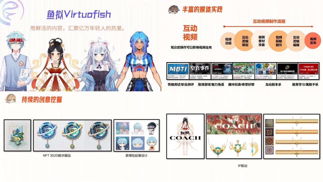 管理學院的“魚擬Virtuafish——沉浸式互動體驗式數字媒體轉型引領者”項目獲全國銀獎、上海市金獎。項目是以沉浸式、交互式新型媒體為主的創新形式內容提供商,希望用鮮活的內容,匯聚億萬年輕人的熱愛。項目主創人周澤宇是一名00后大學生,他通過不斷實踐,將熱愛和特長融入自己的創業項目。作為文化娛樂領域的探索者,致力于生產沉浸式、趣味性的互動視頻以及打造基于面部捕捉和2D轉3D的虛擬社交技術打造虛擬主播并進行運營。目前團隊已成為B站官方合作的直播公會伙伴,主賬號“嘖魚”已擁有近16萬粉絲,合作客戶包括網易、盛趣、雷霆游戲等。項目獲上海市大學生科技創業基金會雛鷹計劃資助。