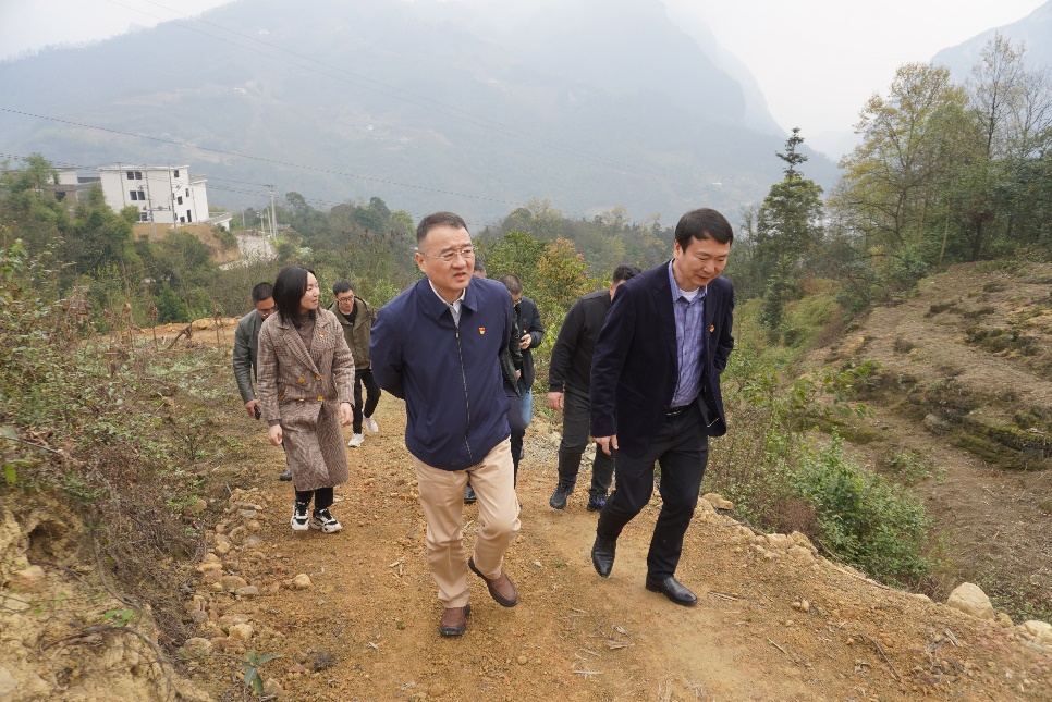 在廟壩鎮黃草社區、電商展示中心、黃草小學、黃草馬鞍農作物輪作基地、二坪黨建活動場所,王云駿一行通過實地檢查、現場交流、座談等方式,詳細了解定點幫扶工作落實情況,看望結對幫扶學生、校園建設、教學工作情況和學生學習、生活情況。