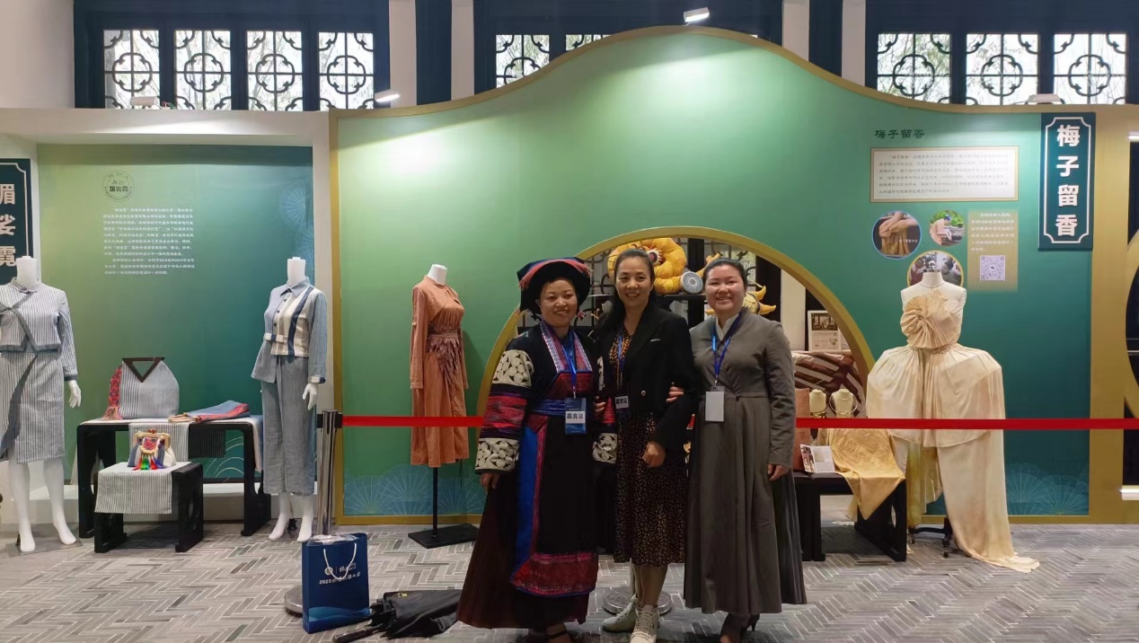 東華大學研培學員陳梅和韋厚珍還專門從貴州趕到品牌大會現場,向觀眾展示、講解自己品牌的魅力和非遺傳承的理念。梅子留香品牌寓意“堅守初心、不畏艱難,又樂于奉獻、樂于幫人”的精神。