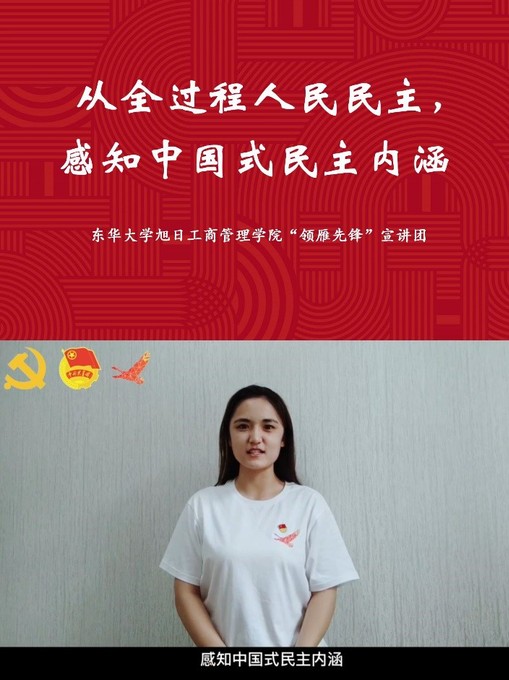 旭日工商管理學院《從全過程人民民主,感知中國式民主內(nèi)涵》公開課從“價值民主”“制度民主”“實踐民主”三個維度,闡釋了“全過程人民民主”的深刻內(nèi)涵。同時,結合抗擊新冠肺炎疫情的中國行動、民族區(qū)域自治制度下的民主選舉工作、上海人民城市建議征集等鮮活案例,引導青年學子正確認識全過程人民民主并積極參與民主實踐活動。