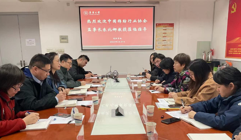 近日,中國棉紡織行業協會監事長朱北娜蒞臨紡織學院指導交流。紡織學院黨委書記李佳耀、院長覃小紅、副院長王先鋒以及教師代表參會。