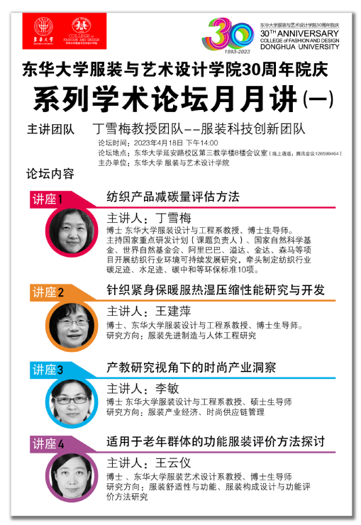 東華大學服裝與藝術設計學院30周年院慶 系列學術論壇月月講(一)