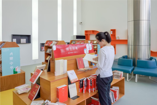 在圖書館讀者沙龍,學校精心推出“典耀中華”主題書展,結合當前學習貫徹習近平新時代中國特色社會主義思想主題教育特別開辟了主題教育專區,并分設了紅色經典、中華傳統經典、當代經典等其他三大專區,為廣大師生讀經典、品書香提供了平臺和空間。