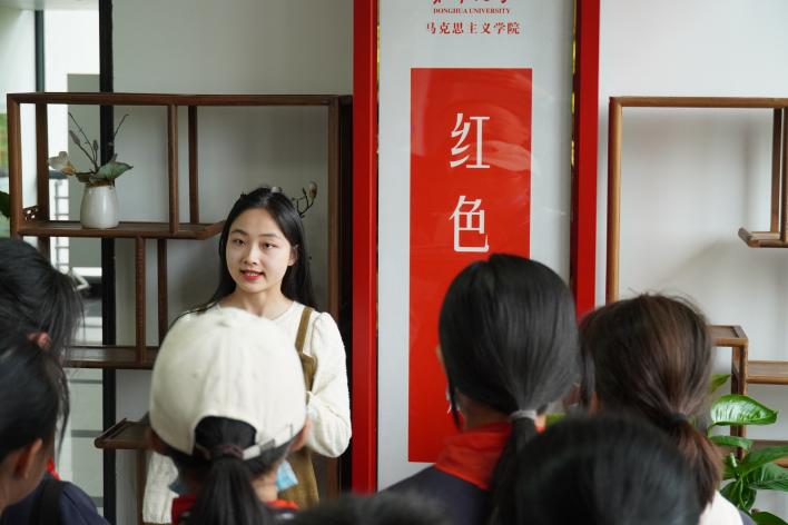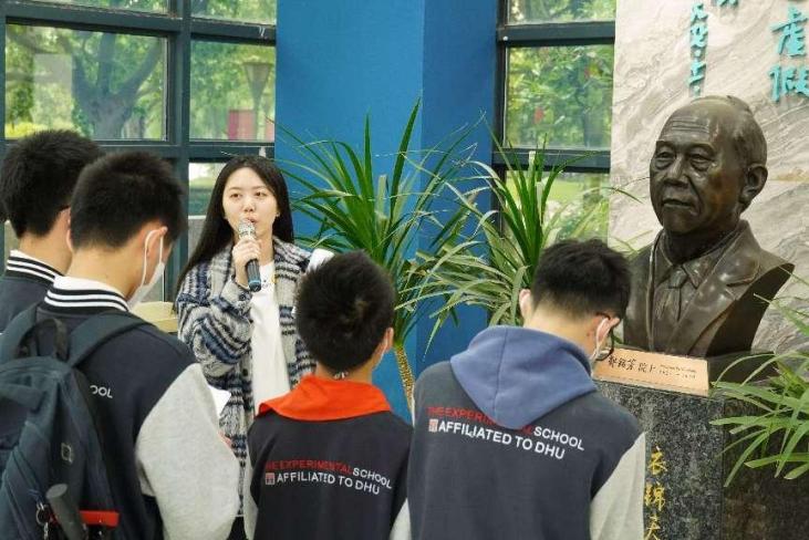 習近平總書記在中國人民大學考察調(diào)研時指出:“青少年思想政治教育是一個接續(xù)的過程,要針對青少年成長的不同階段,有針對性地開展思政政治教育?!倍嗄陙恚倚y手東華大學附屬實驗學校(以下簡稱為“附校”)共建“行走的大思政課”特色項目,以馬克思主義學院《童心向黨學榜樣 紅色精神代代傳》和《師說百年》兩門走進附校開設(shè)的思政課為主體,以“紅色長廊”為核心空間,以校史館、科技館、各學院、研究中心的“科普+思政”課程為特色學習空間,為附校學子量身打造研學課程,聚焦基礎(chǔ)教育各年段學生不同學情,積極發(fā)揮學校作為上海市“大思政課”建設(shè)重點試驗高校作用,培養(yǎng)堪當民族復(fù)興重任的時代新人。